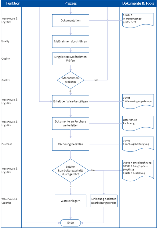 Diese Prozessbeschreibung beschreibt die Abläufe während des Wareneingangs. Mit dieser Prozessbeschreibung soll sichergestellt werden, dass keine fehlerhaft gelieferten Teile den Produktionsprozess erreichen.