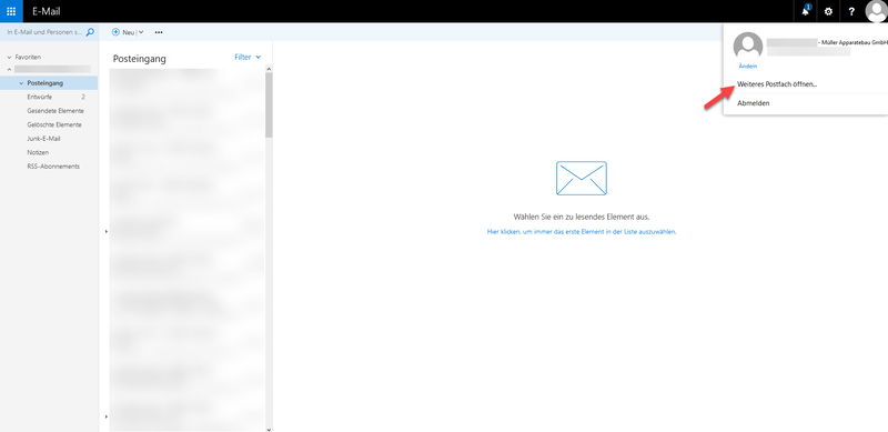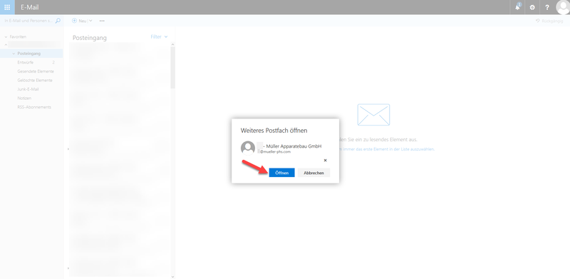 [[Datei:Outlook 00003.png|zentriert|mini|800x800px|Auf "Weiteres Postfach öffnen" klicken.]] | [[Datei:Outlook 00003.png|zentriert|mini|800x800px|Auf "Weiteres Postfach öffnen" klicken.]] | ||
