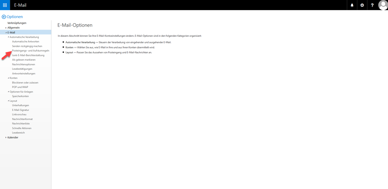 E-Mails können in Outlook mit Hilfe von Regeln verwaltet werden, u.a. können sie automatisch verschoben, gekennzeichnet oder gelöscht werden. Bei einem persönlichen (= namentlich zugeordneten) Postfach erfolgt das Erstellen / Verwalten der Regeln direkt in Outlook, bei einem | E-Mails können in Outlook mit Hilfe von Regeln verwaltet werden, u.a. können sie automatisch verschoben, gekennzeichnet oder gelöscht werden. Bei einem persönlichen (= namentlich zugeordneten) Postfach erfolgt das Erstellen / Verwalten der Regeln direkt in Outlook, bei einem freigegebenen Postfach (z.B. Abteilungspostfach) dagegen werden die Regeln in "Outlook im Web" angelegt und verwaltet. | ||