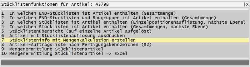 Stücklisteninfo mit Mengenkalkulation
