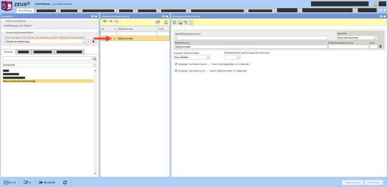 Auf "Abwesenheitsvertretung" klicken. Auf eine Abwesenheitsvertretung klicken, um Details zu sehen. Achtung: Abwesenheitsvertretungen wurden bis jetzt immer von ISGUS angelegt / bearbeitet.